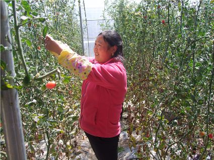 本網(wǎng)訊(馬建華 文/圖)陽春三月,爐霍大地仍然一派蕭條景象。然而在爐霍縣斯木鄉(xiāng)吉絨村的蔬菜大棚里,卻綠意盎然。紅彤彤的樹番茄、碩大的茄子、長勢喜人的青椒、紅艷艷的花卉,大棚里溫暖的春色吸引了縣城市民和游客前來觀光,購買新鮮的蔬菜。比縣城菜市場價格便宜一半的蔬菜,讓市民爭相前來購買。吉絨村村民將土地流轉(zhuǎn)給蔬菜種植公司,收取土地流轉(zhuǎn)費(fèi),在蔬菜大棚里打工,每天還有100元錢的收入,而且學(xué)到了先進(jìn)的蔬菜種植技術(shù),為今后發(fā)展蔬菜大棚、種植反季節(jié)蔬菜、增加經(jīng)濟(jì)收入打下了堅實基礎(chǔ)。爐霍縣在發(fā)展高原特色現(xiàn)代觀光農(nóng)業(yè)方面邁出了可喜步伐。