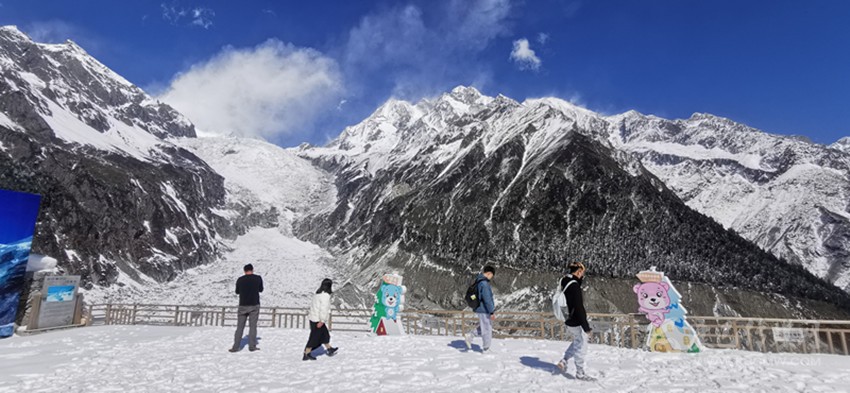 “前天從網(wǎng)上看到海螺溝景區(qū)即將開放的信息,別提多帶勁兒了。這次疫情發(fā)生就一直在家呆著,悶太久了,就想著疫情可控可防的時(shí)候,一定要來(lái)川西走走,剛好海螺溝離成都車程近,網(wǎng)絡(luò)風(fēng)評(píng)也是有口皆碑的。”遠(yuǎn)道而來(lái)的寧波游客吳先生目之所及盡是玉樹瓊枝、銀裝素裹的雪原冰川風(fēng)光,激動(dòng)不已地說(shuō):“透透氣、玩玩雪、泡泡湯,回歸自然的感覺真太好了!”