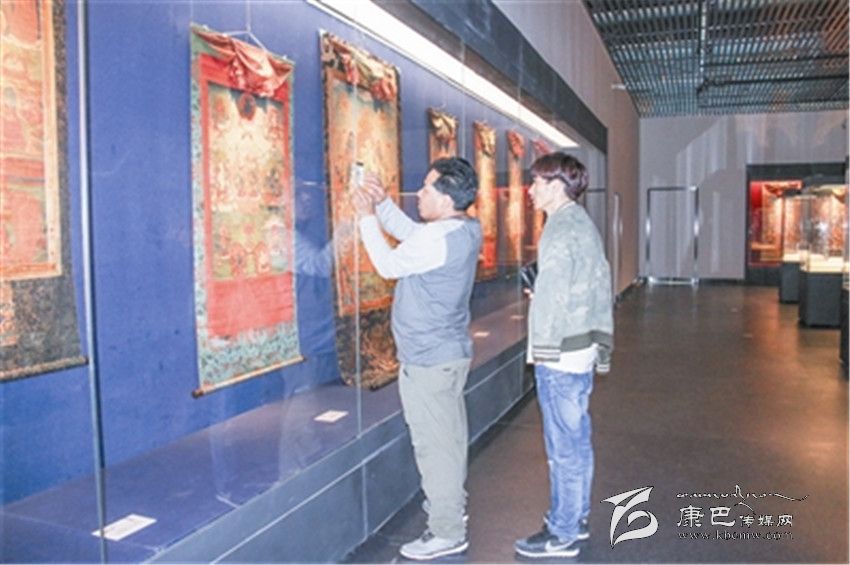 在博物館的一樓右側(cè)的展館,我州收藏家羅布的近四十多件私人收藏在此展示。在接受采訪時羅布說:“這些展品是從60多件藏品中選擇出來參展的。我從小受家庭影響便接觸到藏族歷史文化,對這些藏品有著深厚的情感。從記事開始就對這些東西很熟悉,‘文革’期間家里一些收藏品被家人偷偷藏在山里,‘文革’結(jié)束后才把這些東西拿回家。那一刻,我從內(nèi)心深處感受到這些東西的珍貴性。我覺得這是我們藏民族獨有的文化,在以后的幾十年時間里,我走遍了藏區(qū)各地,把這些文物當做一門藝術去研究?,F(xiàn)在我做收藏、展示、研究等工作,主要是因為我個人認為這些來自各地的藝術珍品是我們民族的魂,我想將它們?nèi)苛粼诳刀ǎ艚o后人。說起藏族文化,很多時候口說無憑,只有通過更多的實物展示,才能讓人們更多、更深刻的去了解藏族文化。藏文化是中華文化的重要組成部分,而這些藏品才是藏文化最好的代言。我覺得保護和傳承這些東西,人人有責。”