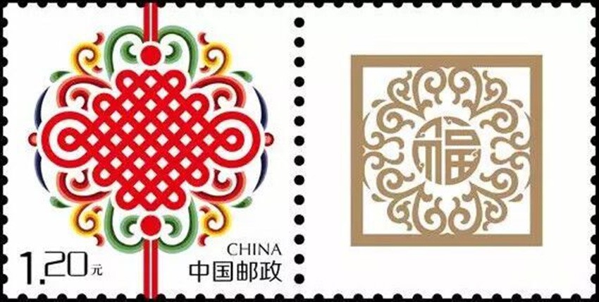 2002年5月10日,中國郵政發(fā)行《如意》個(gè)性化服務(wù)專用郵票一枚。主票圖案為如意柄端系著一個(gè)紅色“中國結(jié)”,附票有“祝?!倍?; 2003年3月3日,中國郵政發(fā)行《同心結(jié)》個(gè)性化服務(wù)專用郵票一枚。主票圖案為盤長結(jié)4邊編織有心型繩結(jié)的同心結(jié),附票為“祝?!倍?;2006年9月25日,中國郵政發(fā)行《中華全國歸國華僑聯(lián)合會(huì)成立五十周年》紀(jì)念郵票一枚。圖案為阿拉伯?dāng)?shù)字“5”與中華全國歸國華僑聯(lián)合會(huì)圓形會(huì)徽組成數(shù)字“50”,象征全國僑聯(lián)五十周年,背景畫面為淡淡的粉紅色“中國結(jié)”。寓意歸國華僑與全國人民血肉相連,同心同德共同建設(shè)美好家園;2013年8月8日,中國郵政發(fā)行一枚《美好祝?!焚R卡專用郵票,圖案為象征喜慶的紅色“中國結(jié)”;2014年9月20日,中國郵政發(fā)行《中國夢(二)——民族振興》特種郵票,其中第四枚“民族團(tuán)結(jié)”,圖案中載歌載舞的各民族群眾上方有一個(gè)大紅的“中國結(jié)”,象征著各民族大團(tuán)結(jié)。