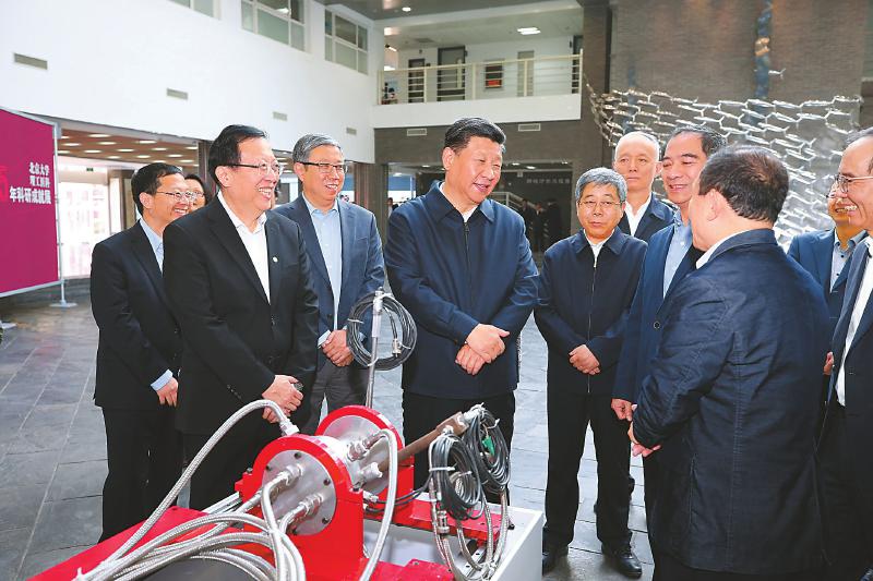 近年來(lái),北京大學(xué)培養(yǎng)和匯聚了一批具有世界領(lǐng)先水平的科學(xué)家、科技領(lǐng)軍人才和創(chuàng)新團(tuán)隊(duì),科研綜合實(shí)力、原始創(chuàng)新能力顯著增強(qiáng)。在金光生命科學(xué)大樓一層大廳,展示了近年來(lái)北京大學(xué)在理科、工科、醫(yī)科等領(lǐng)域的科研成果。習(xí)近平認(rèn)真聽(tīng)取關(guān)于學(xué)校學(xué)科建設(shè)、人才隊(duì)伍建設(shè)、科研創(chuàng)新能力提升等情況介紹,并仔細(xì)察看新一代干細(xì)胞技術(shù)、碳芯片技術(shù)、微型雙光子顯微成像系統(tǒng)等科研裝置和實(shí)物模型。習(xí)近平對(duì)大家說(shuō),看了你們的成果展示,我為你們感到驕傲。創(chuàng)新是引領(lǐng)發(fā)展的第一動(dòng)力,是國(guó)家綜合國(guó)力和核心競(jìng)爭(zhēng)力的最關(guān)鍵因素。重大科技創(chuàng)新成果是國(guó)之重器、國(guó)之利器,必須牢牢掌握在自己手上,必須依靠自力更生、自主創(chuàng)新。在這個(gè)問(wèn)題上,我們一定要保持清醒。要繼續(xù)深化科技體制改革,把人、財(cái)、物更多向科技創(chuàng)新一線傾斜,努力在關(guān)鍵共性技術(shù)、前沿引領(lǐng)技術(shù)、現(xiàn)代工程技術(shù)、顛覆性技術(shù)創(chuàng)新上取得更大突破,搶占科技創(chuàng)新制高點(diǎn)。高校是科技創(chuàng)新體系的重要組成部分,高校科研人員是我國(guó)科技創(chuàng)新的重要隊(duì)伍。要加強(qiáng)學(xué)科之間的協(xié)同創(chuàng)新,加強(qiáng)對(duì)交叉學(xué)科群和科技攻關(guān)團(tuán)隊(duì)的支持,培養(yǎng)造就更多具有國(guó)際水平的科技人才和創(chuàng)新團(tuán)隊(duì)。
