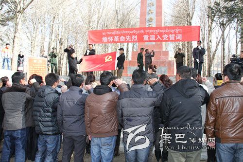 該縣結(jié)合正在開展的群眾路線教育實踐活動,千余名干群走到刻有“人民英雄永垂不朽”的紀(jì)念碑前,整齊列隊,向為理塘解放和建設(shè)光榮犧牲的778名烈士默哀,學(xué)生代表、解放軍代表表示要繼承革命先烈遺志,為理塘美好明天奉獻一生,50名黨員代表帶領(lǐng)廣大黨員重溫了入黨誓詞,接受革命傳統(tǒng)教育,并為烈士們敬獻了花圈,開展了祭掃活動。