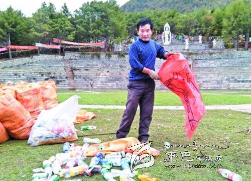 5月6日是康定縣一年一度“四月八”跑馬山國(guó)際轉(zhuǎn)山會(huì),上萬人在跑馬山上祈福游玩。5月7日在一家爆料網(wǎng)站上一位網(wǎng)友發(fā)布了一篇名為《甘孜康定跑馬山萬人轉(zhuǎn)山會(huì)后垃圾遍野》的微博。微博原文中說:“2014年05月06日,四川省甘孜藏族自治州,滿負(fù)荷的垃圾桶。跑馬山景區(qū)垃圾遍野。當(dāng)天是農(nóng)歷四月八轉(zhuǎn)山會(huì),景區(qū)免門票,至少有上萬游客涌入景區(qū),參加轉(zhuǎn)山會(huì)活動(dòng)。”針對(duì)該網(wǎng)友爆料的情況記者走訪了康定跑馬山景區(qū)。在景區(qū)現(xiàn)場(chǎng)記者的確見到大量的垃圾“橫尸遍野”。藍(lán)天白云、青青草地真可謂詩(shī)情畫意,可是眼前的美景卻被無數(shù)的垃圾破壞。不知何時(shí)起旅游、垃圾仿佛成了連體嬰兒,甩也甩不掉,什么時(shí)候長(zhǎng)假、旅游與垃圾才能隔離開來呢?帶著疑問記者采訪了景區(qū)相關(guān)負(fù)責(zé)人。
