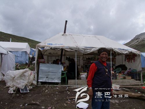 由于挖蟲草的時(shí)間前后近2個(gè)月,所以采挖蟲草的人往往都不回家,而是在山坳靠水的地方扎帳篷宿營(yíng)。在蟲草采挖點(diǎn),我們看到很多這樣的宿營(yíng)地,或三、五頂帳篷扎堆,或三、五十頂帳篷聚居。在理塘縣曲登鄉(xiāng)阿加隆洼這個(gè)大的聚居地上記者看到上千頂帳篷整齊有序地排成行,不僅能看到帳篷外的煤氣罐和處處升起的炊煙,還能看到供娛樂和消遣用的臺(tái)球桌和能采購到日常生活用品的小商店,甚至還能看到升起的紅旗。聚居區(qū)如此龐大,其實(shí)并不都是采挖人。這其中還混雜著許多蟲草的收購人和兜售人,還有各種到這里來做生意賺錢的人,如一個(gè)小集鎮(zhèn)般熱鬧。
