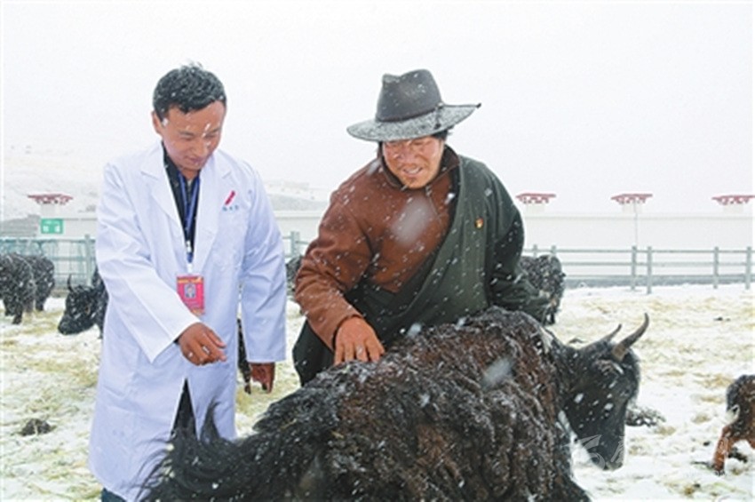5月8日,甘孜縣達(dá)通瑪片區(qū)大雪飛揚(yáng)。在茶扎鄉(xiāng)銀多村集體牧場(chǎng),放養(yǎng)人員格絨正在給上百頭牦牛喂草料,他喜滋滋地說(shuō),通過(guò)牧民儲(chǔ)備和農(nóng)牧農(nóng)村局提供草料的方式,牦??梢园踩^(guò)冬。銀多村現(xiàn)代化集體牧場(chǎng)合作社成立一年多的時(shí)間,共出欄牦牛16頭,總收益67380元,除去20%預(yù)留金,村民有了一定的收入,而作為放牧人員,他管理了52頭牦牛,一年有1.2萬(wàn)元的收入。