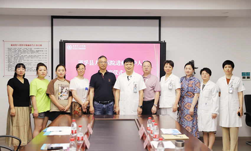 程振宇(左五)選送三名醫(yī)護人員赴金華市人民醫(yī)院進修。